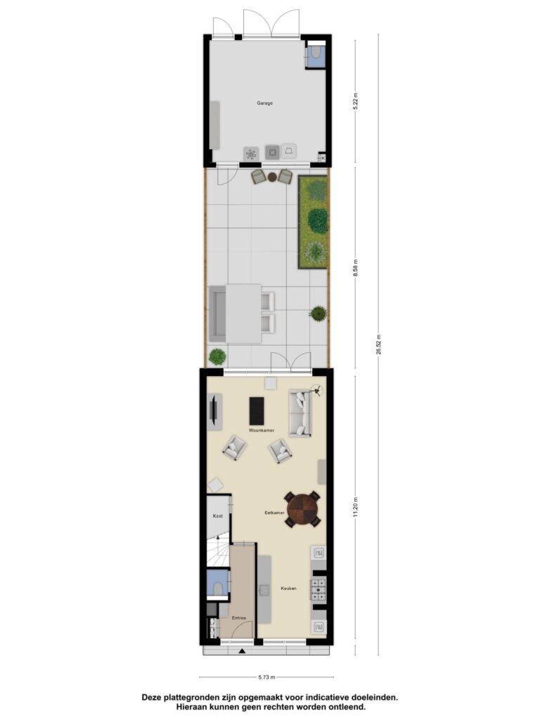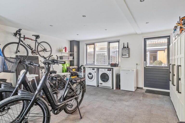 Alsof de woning nog niet genoeg te bieden heeft, staat er in de achtertuin nog een ware verrassing! De stenen garage van maar liefst 26 vierkante meter, voorzien van elektriciteit, water en verwarming. Hier bevinden zich ook de witgoedaansluitingen en er is zelfs een toilet aanwezig. Deze ruimte is door de vorige bewoners in gebruik geweest als praktijkruimte, maar kan ook perfect dienen als hobbyruimte of kantoor. Door de grote openslaande deuren aan de achterzijde kan de garage ook gebruikt worden om de auto overdekt te parkeren of voor motoren en/of fietsen.
