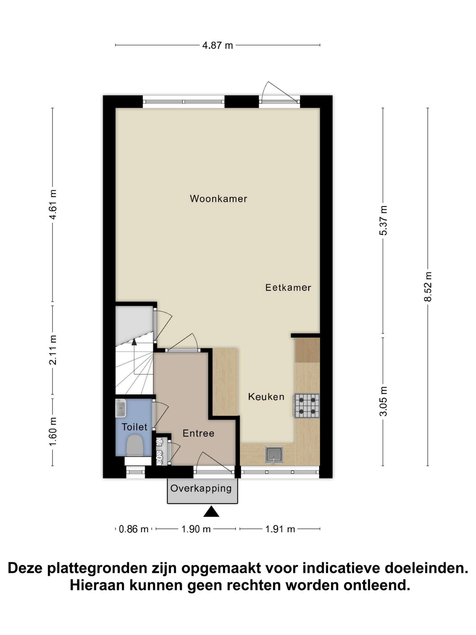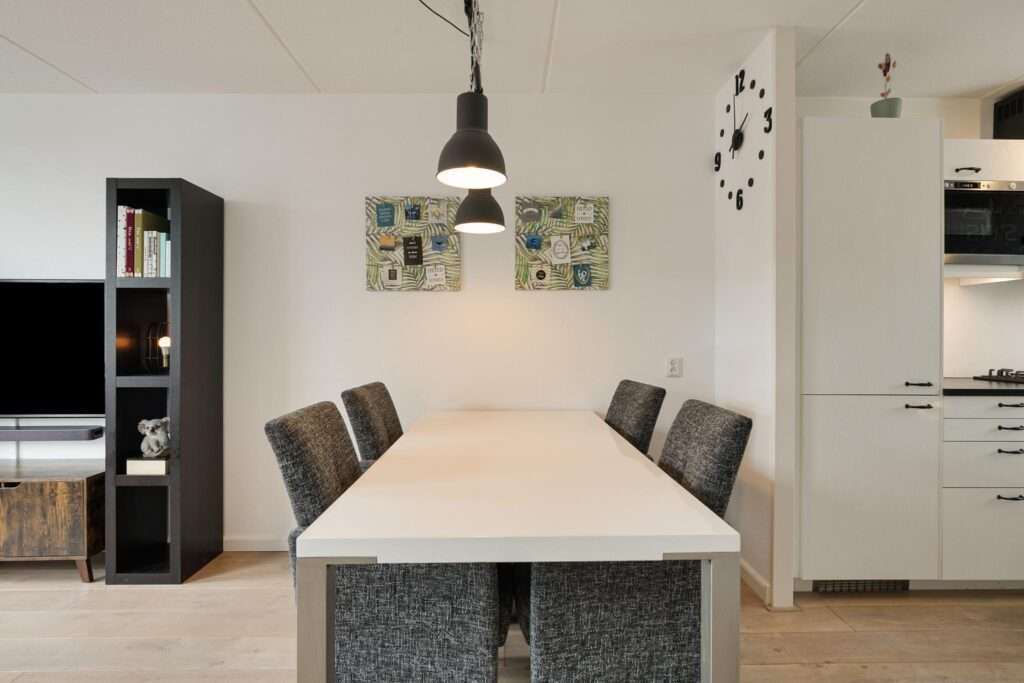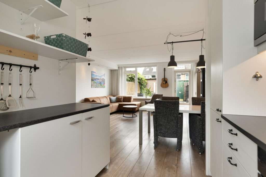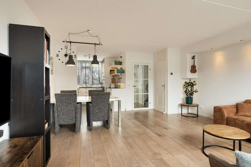 Via de entree kom je in de hal met meterkast, garderoberuimte en doorgang naar de moderne keuken. De keuken is uitgerust met een vaatwasser, koel-/vriescombinatie, 4-pits gasfornuis, afzuigkap, oven en magnetron. De woonkamer ligt aan de achterzijde en heeft door de grote raampartij veel lichtinval.