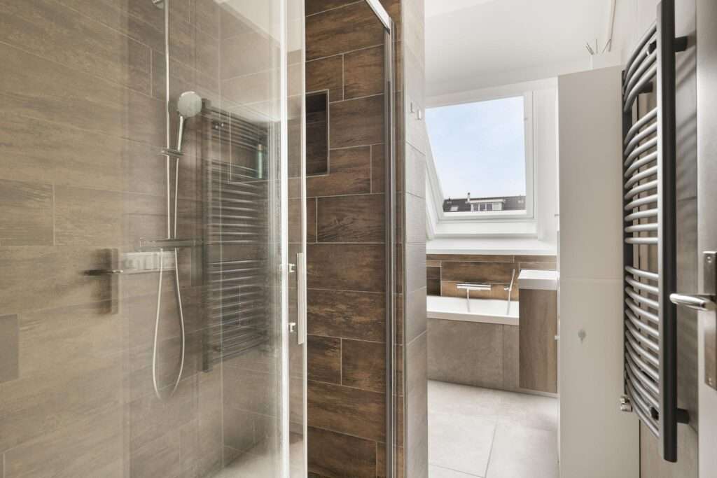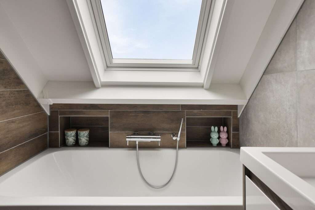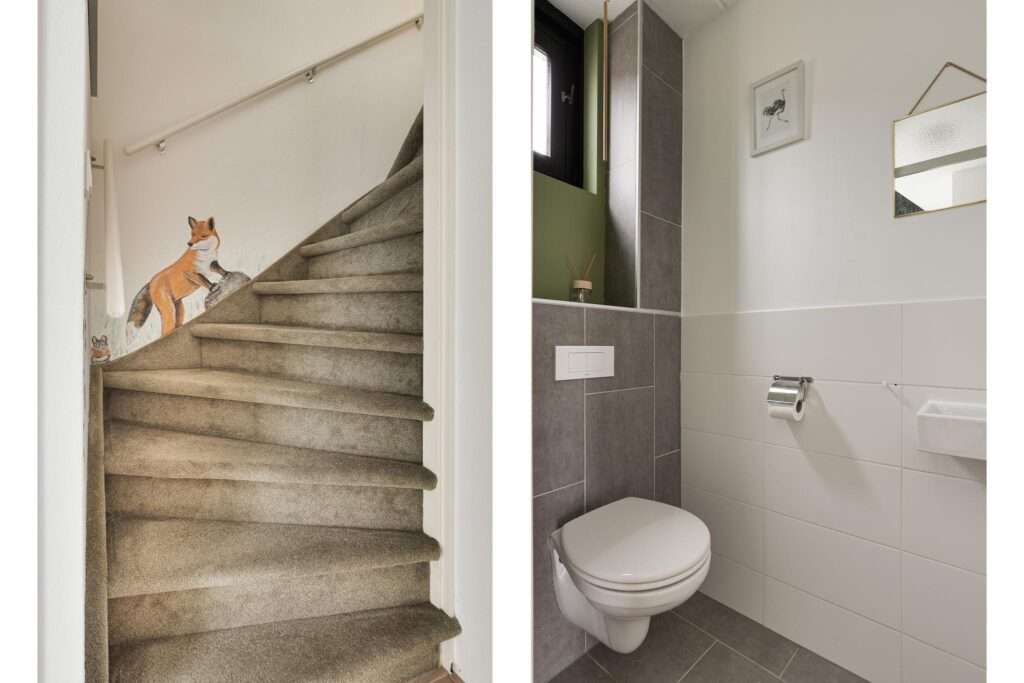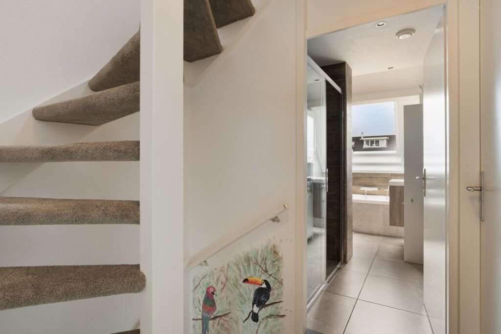 Op de eerste verdieping is de overloop met doorgang naar de twee slaapkamers van deze verdieping. Aan de achterzijde bevindt zich de zeer grote masterbedroom. De voormalige badkamer is nu te gebruiken als waskamer/berging, super praktisch! De badkamer is de eye catcher van de woning met vloerverwarming, een ligbad, dubbele douche, toilet en een wastafelmeubel.