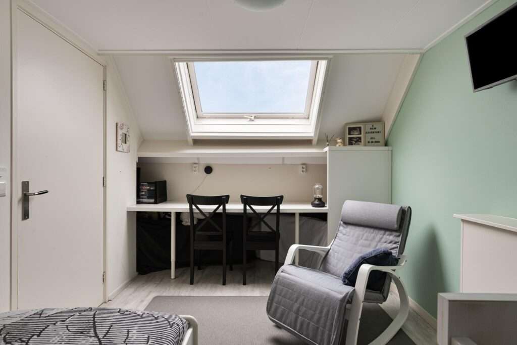De tweede verdieping heeft een ruime overloop met CV ketel opstelling (bouwjaar: 2017) en een goede slaapkamer. Verder is er ook een praktische vliering. Deze kamer is eventueel nog uit te breiden door het plaatsen van dakkapellen.