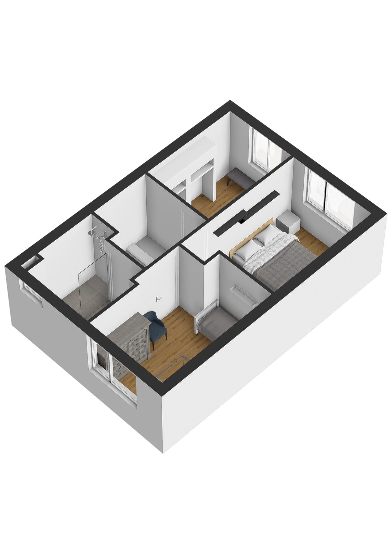 - Airco in de woonkamer en de slaapkamer;
